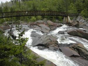 The falls are located just off of Hwy 144, about 35 km west of Sudbury, and 15 km north of Hwy 17. There is a small roadside park which offers some nice views of the falls, and is also the trailhead for the trail to the falls. There is a pedestrian bridge across the top of the falls, which leads to a nature trail through the woods on the far side of the falls. The park also has different types of rock on display, plus some old mining equipment.