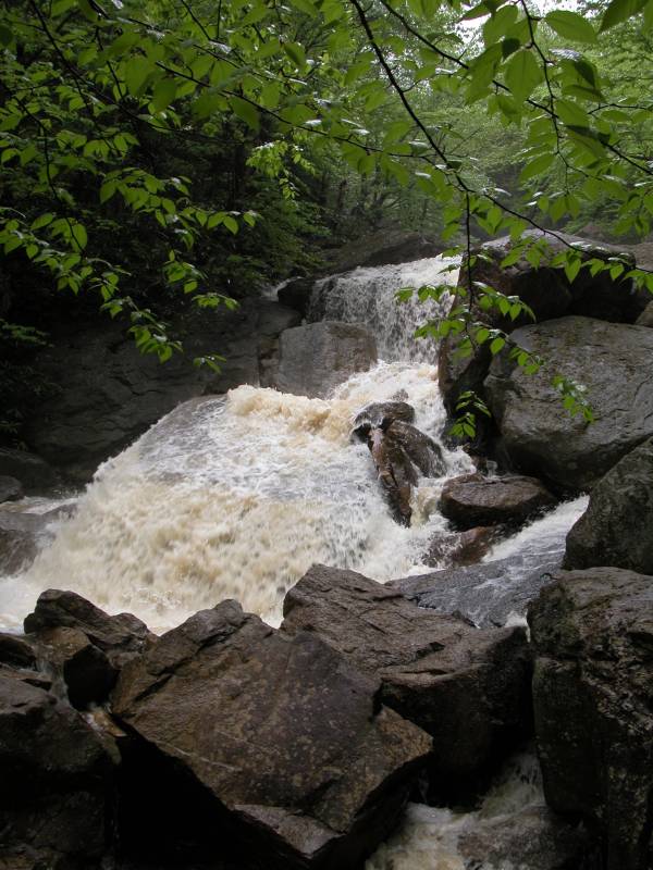 Pendleton Falls is in Blackwater Falls State Park near Davis, West Virginia. This waterfall is the result of Pendleton Run tumbling into the Blackwater Gorge. The gorge is probably around 200 feet deep here, but the creek descends this in many different plunges. In general this cascade is not as steep as Elakala Falls but I believe it tends to have more water.