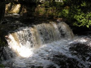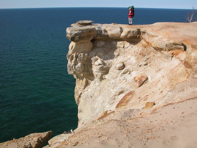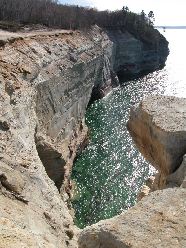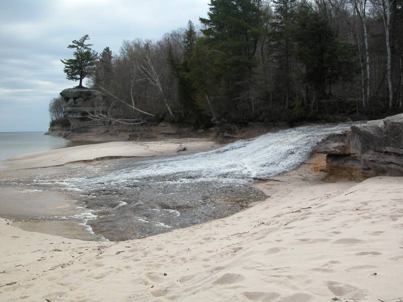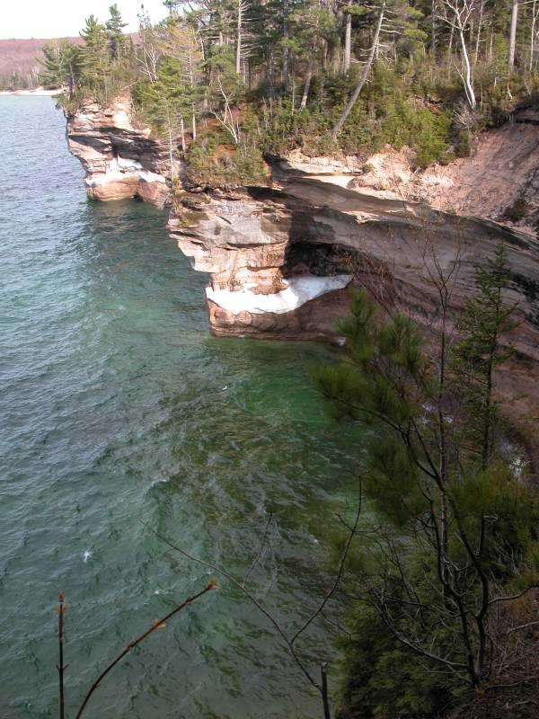 There are miles of hiking trails in the park, many of which wend along the tops of 500 foot cliffs above Lake Superior. There are a number of waterfalls in the park, including Chapel Falls, Miners Falls, Mosquito Falls, Munising Falls, Sable Falls, Bridal Veil Falls and Spray Falls. Bridal Veil and Spray Falls both fall into Lake Superior. In the spring several other temporary falls also fall over the cliffs of Pictured Rocks into Lake Superior.