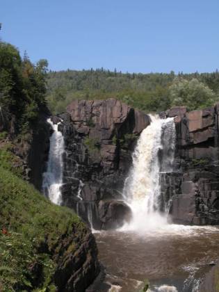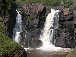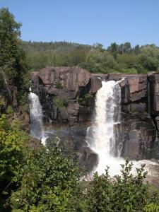 The Middle Falls of the Pigeon River are upstream. They can be hiked to from Grand Portage Park, or in Pigeon River Provincial Park. Devil's Kettle Falls, Upper Falls of the Brule River, the High Falls of the Baptism River, Cross River Falls, Gooseberry Falls, and the Temperance River Gorge are all along Minnesota's north shore.
