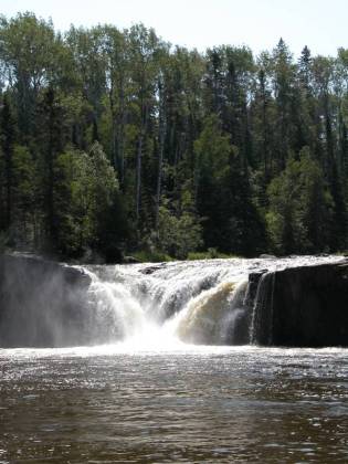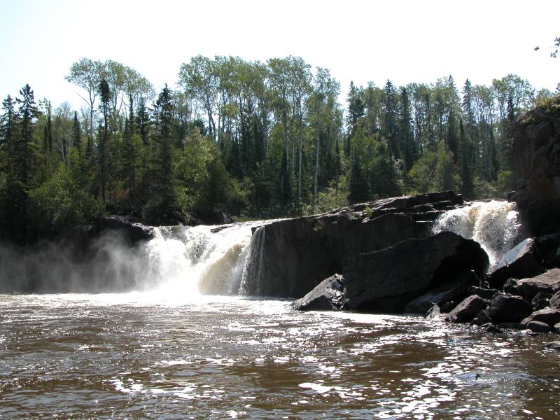 The High Falls of the Pigeon River are downstream. Devil's Kettle Falls, Upper Falls of the Brule River, the High Falls of the Baptism River, Cross River Falls, Gooseberry Falls, and the Temperance River Gorge are all along Minnesota's north shore.