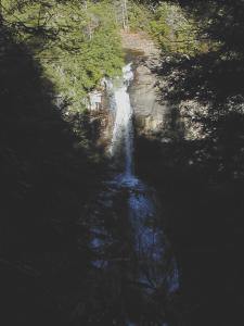 Piney Creek Falls is located in Fall Creek Falls State Park. Piney Creek Falls is outclassed by Fall Creek Falls, which is much higher, and Cane Creek Fall, which has more water. Piney Creek Falls also suffers due to the fact it is hard to get a good look at the falls. The overlook offers an obstructed view, and no good vantage points exist from the rim. The gorge below the falls is very sheer, and a slip could easily be fatal.