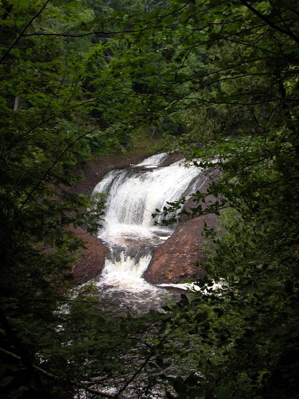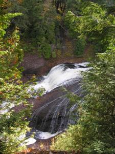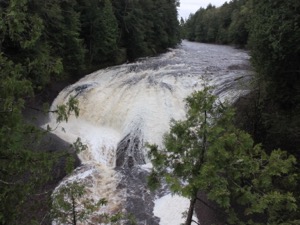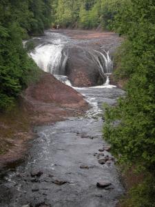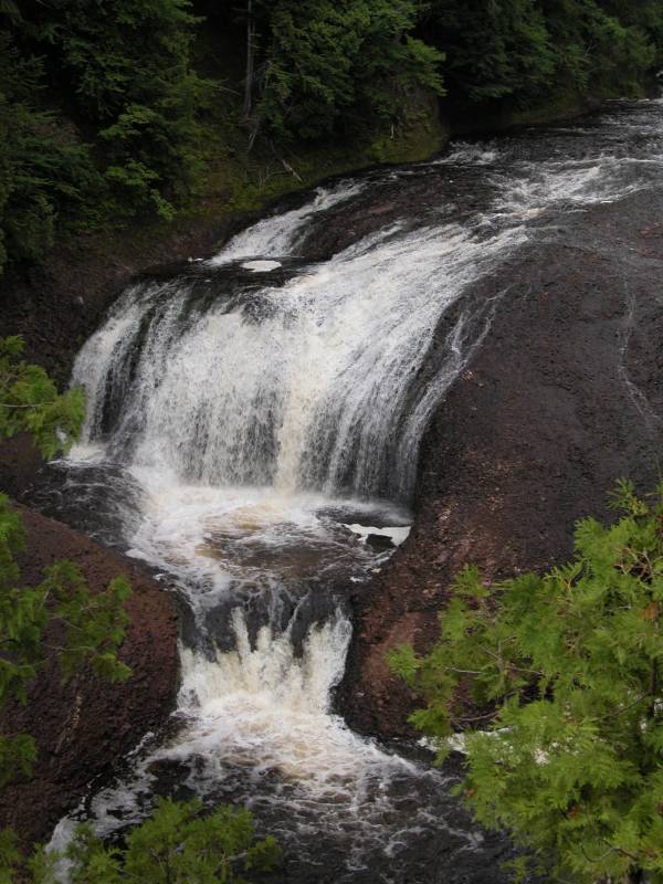 Gorge Falls is just a short walk away. From Potawatomi Falls you can hike or drive downstream to see Rainbow Falls and Sandstone Falls, or upstream to see Conglomerate Falls. The minor Algonquin and Chippewa Falls are further upstream. North of Ramsay on the Black River you can find Gabbro Falls. It is a 40 mile drive to Manabezho Falls. To the west along the Wisconsin/Michigan border you can find Saxon Falls and Superior Falls.