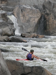 The falls technically lie almost entirely inside of Maryland, but they can be viewed from Virginia or Maryland. In Virginia you can see the falls from Great Falls Park. There are three established vantage points from which to view the falls. You can also climb down into the gorge down to the water below the falls. There is no way to get particularly close to any of the drops, unless you have a kayak.