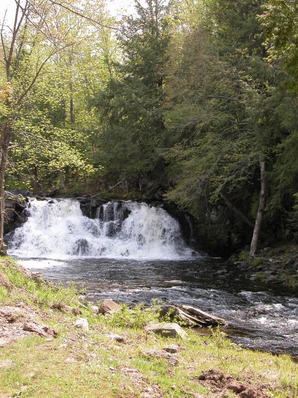 Reaching this waterfall is easy. From US-41 about 1 mile south of L'Anse head west on Power Dam Road. There is a sign for the falls. Follow the road for about a mile. When it crosses the train tracks it branches. There is another sign for the falls. There is a small park at the falls.