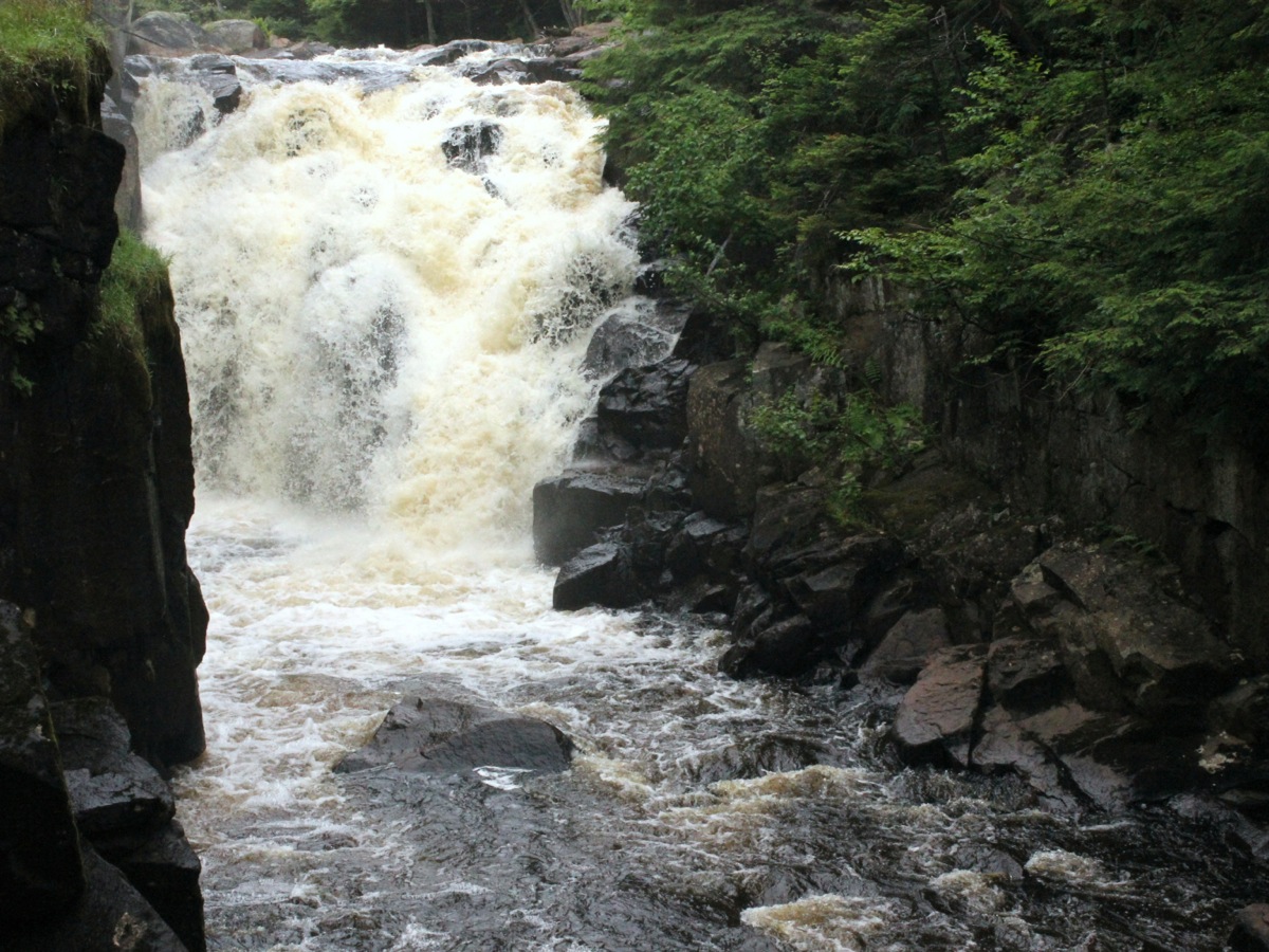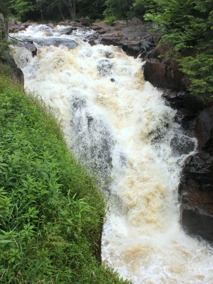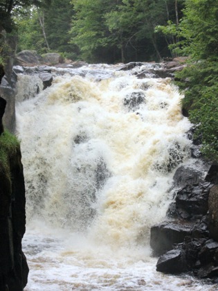 The bigger, but harder to visit Twin Falls is 2.5 miles downstream. Sinclair Falls is a mile beyond that, and Basford Falls is another half mile. Copper Rock Falls is 2.5 miles upstream. The large and scenic Lampson Falls is only 12 miles to the north along Country Route 27.