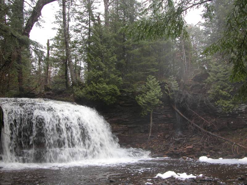 If you continue down FR 2273 you will apparently reach a gate and a trail to the 30 foot Silver Bell Falls. I did not feel my car was up to the trip as the road was pretty beat up and I had know idea how far away the gate was. Laughing Whitefish Falls can also be found off of M-94. Munising Falls, Wagner Falls and the many other waterfalls in the Munising area are 25 miles to the east.