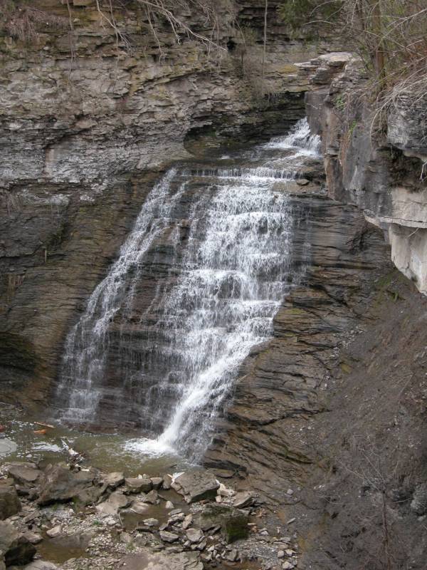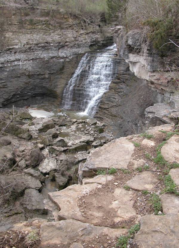 The creek drops another 20 feet or so in a series of drops about 100m below the big falls. There is supposed to be another small drop further down the gorge.