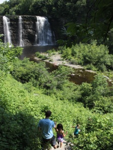 The natural area is located on Falls Road a mile off of County Road 22. There is a parking area on the south side of the road. The parking area accomodates a couple dozen cars, so unless it is an especially busy there will likely be space. It is a short walk to the falls.