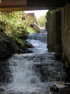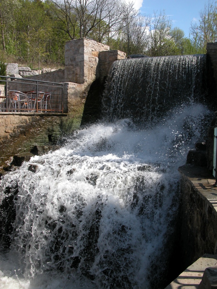 Upstream Ancaster Creek tumbles over a smaller falls at the Old Mill Restaurant.