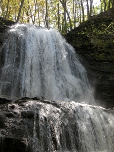 This is a very pretty waterfall. The rock here is much smoother than at most of the waterfalls in the area, and the water slides down the two tiers in a very graceful fashion.