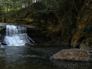 Trappers Falls is about a 5 mile hike from Shining Cloud. If you take the Cross Trail route, you will pass the much smaller Overlooked Falls and Greenstone Falls on the way. The larger and much more easily visited Manabezho Falls and the other Presque Isle River Falls are also in Porcupine Mountains State Park.