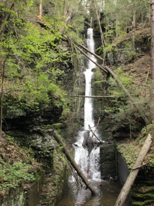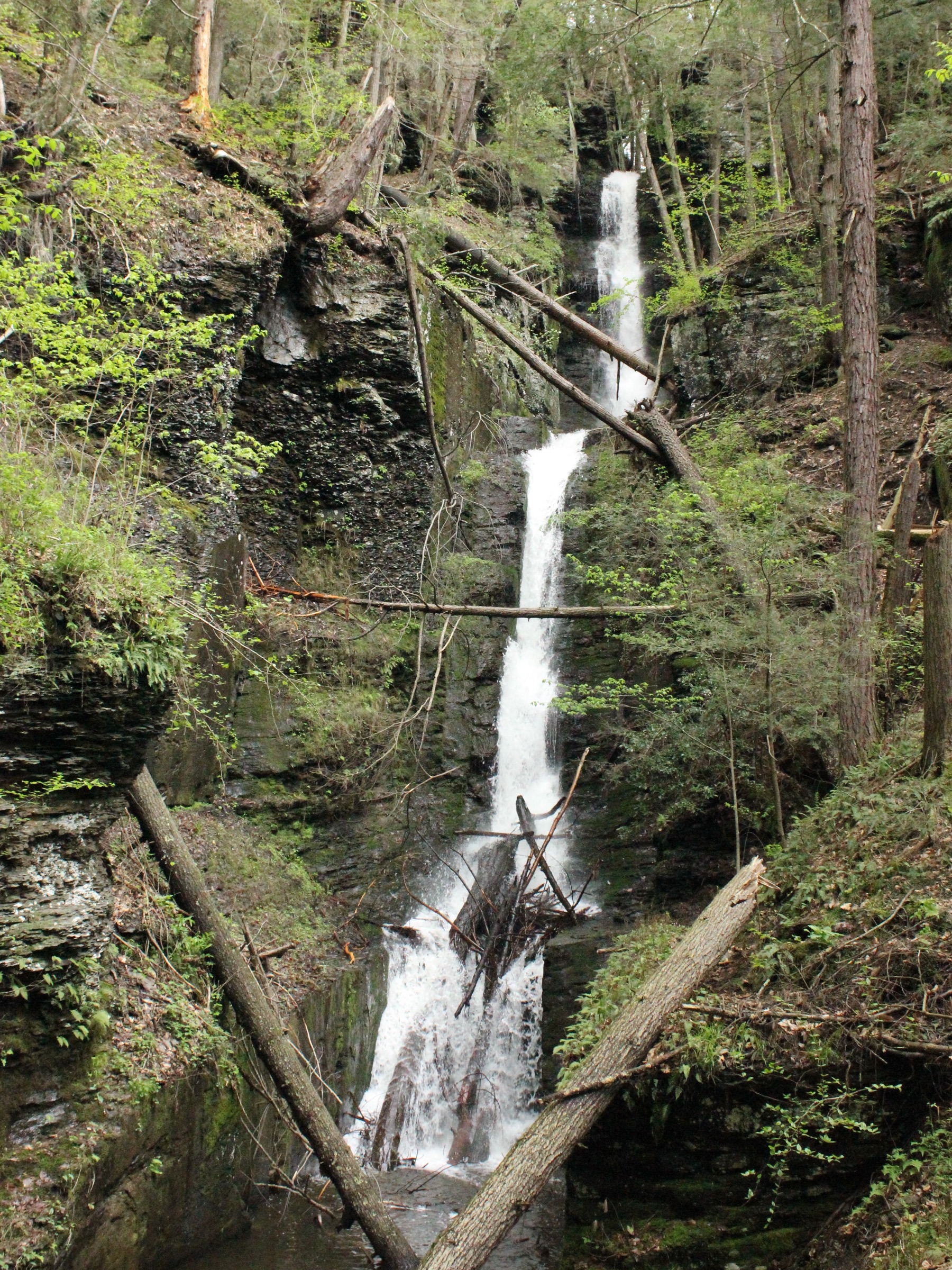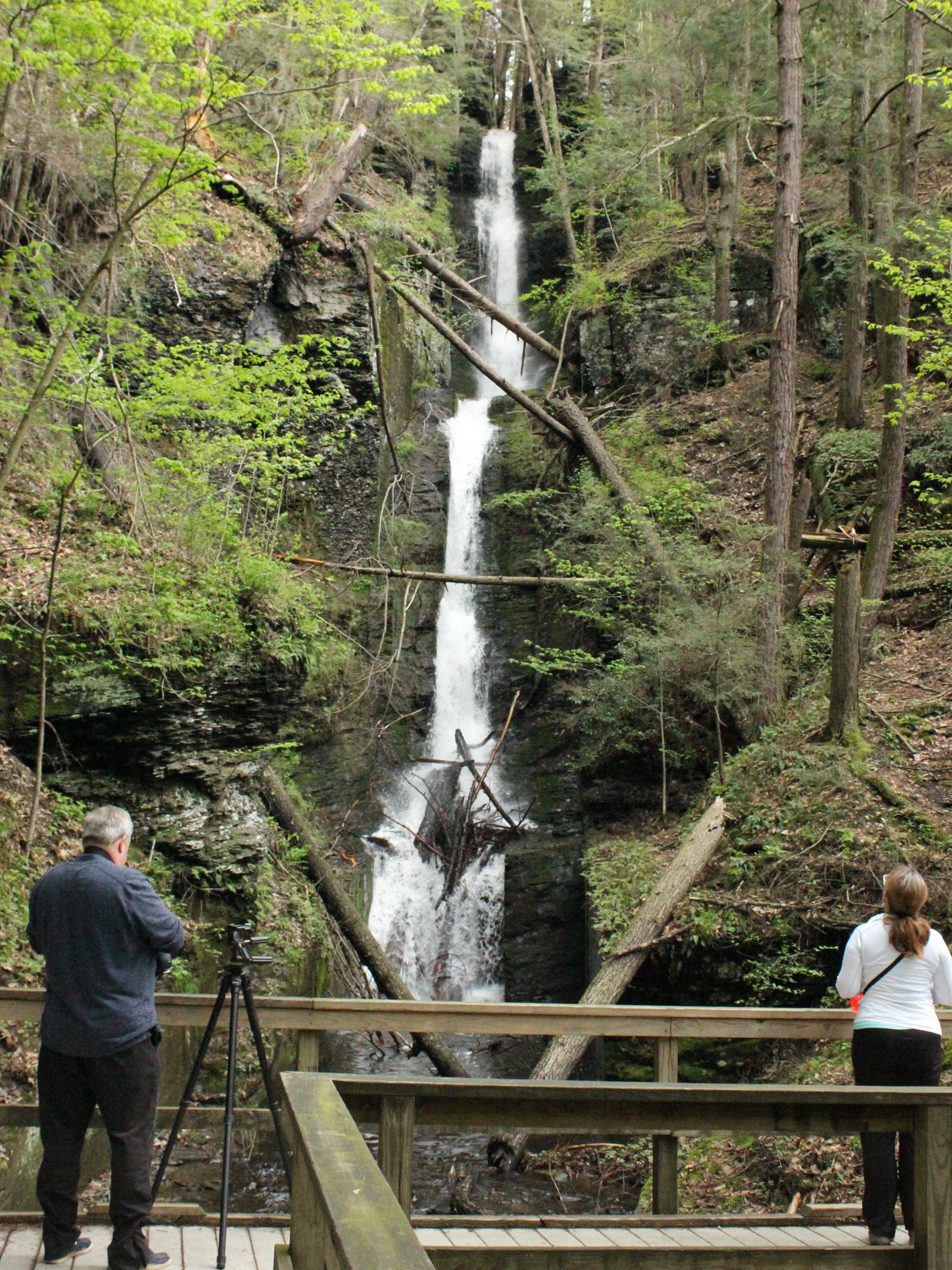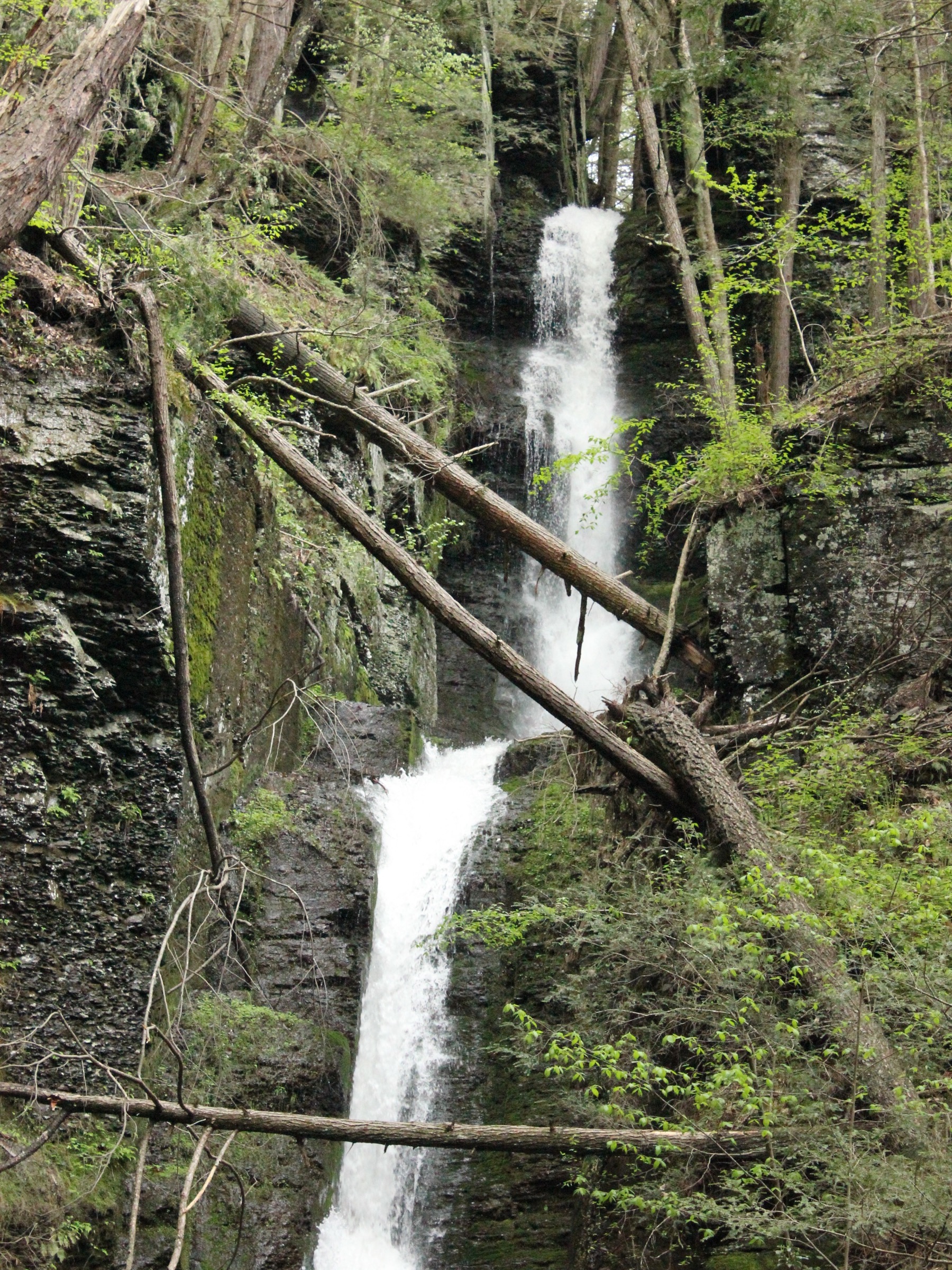 The much larger Dingman Falls is a few hundred feet down the same boardwalk. Raymondskill Falls is 7 miles to the north, and Bushkill Falls is 15 miles to the south. New Jersey's Buttermilk Falls is about 10 miles away by car. Near Milford is the currently inaccessible Pinchot Falls. A trio of falls are less than 5 miles in the nearby George Childs Park, but they have been off limits since the storms of 2018.