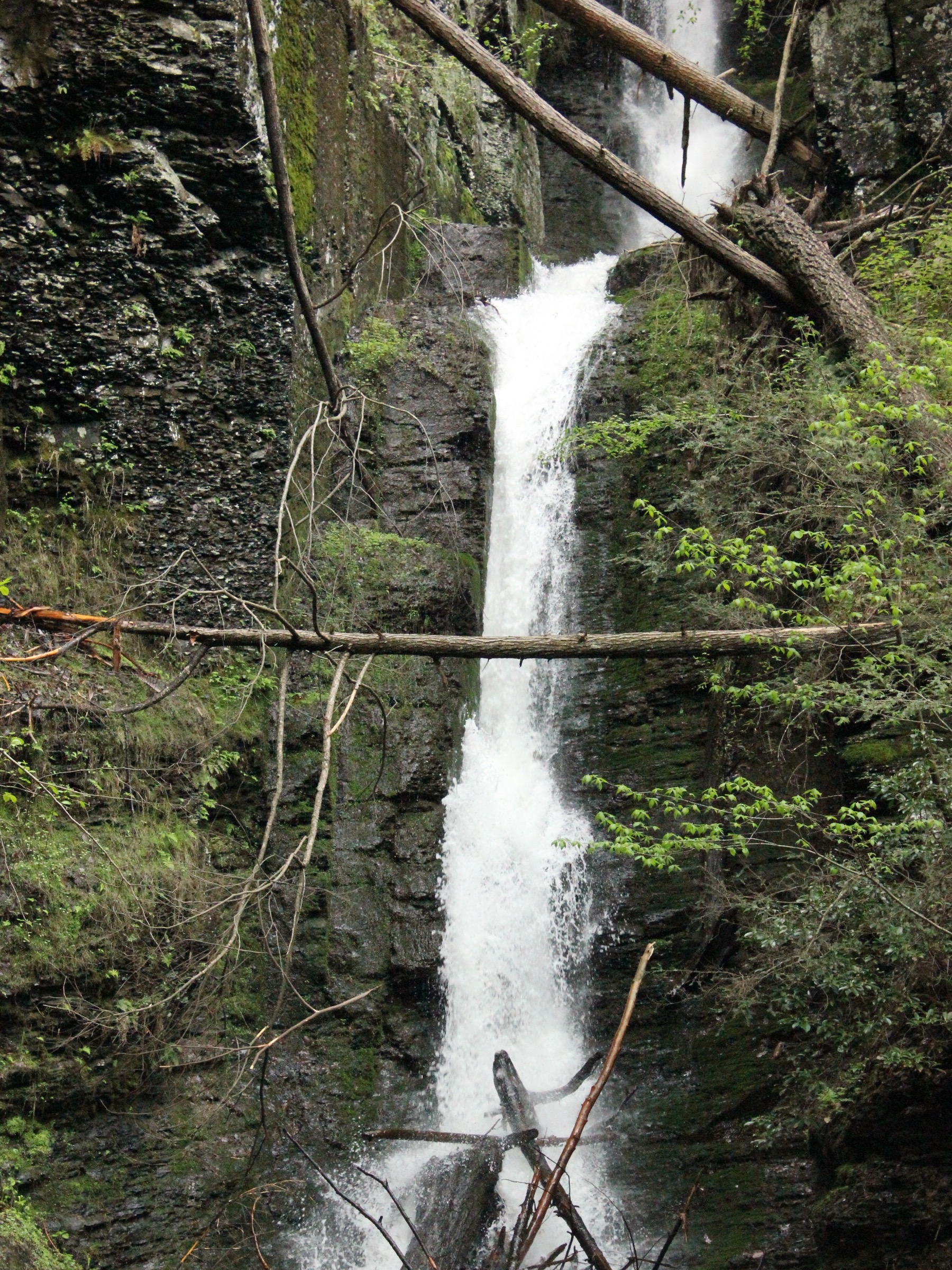 The waterfall is aptly named. The stream has found a natural seam in the rock resulting in a thin thread of a falls. The rock has been cut nearly perfectly straight in some cases, almost as if blocks had been quarried out.