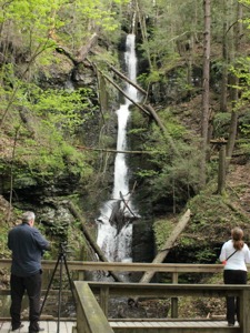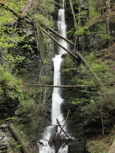 Silverthread Falls is a thin tall falls in Delaware Water Gap National Park. The trail head for this falls starts at the Dingmans Falls Visitor center. This is by far the easiest waterfall to visit in the area. From the parking lot it is a walk of less than 200 feet on level accessible boardwalk to the base of the falls.