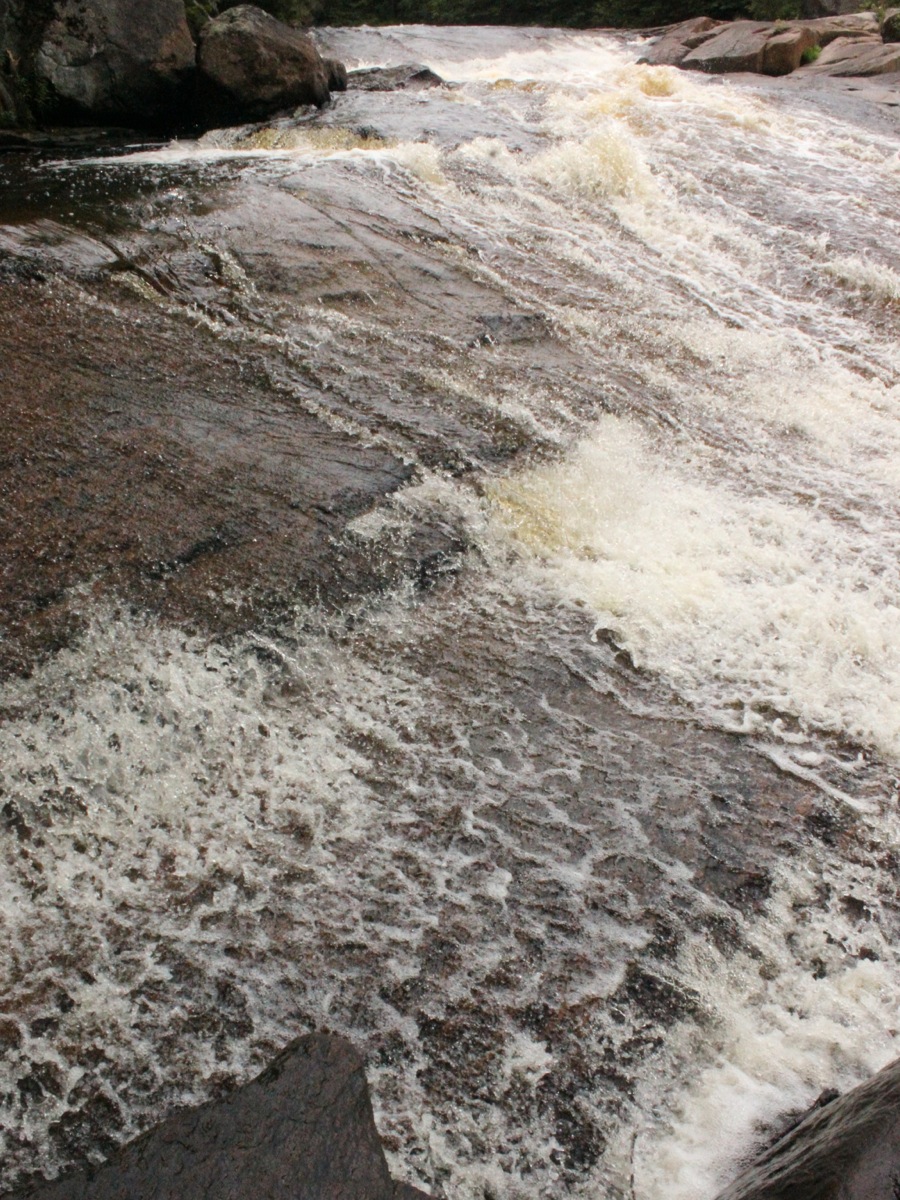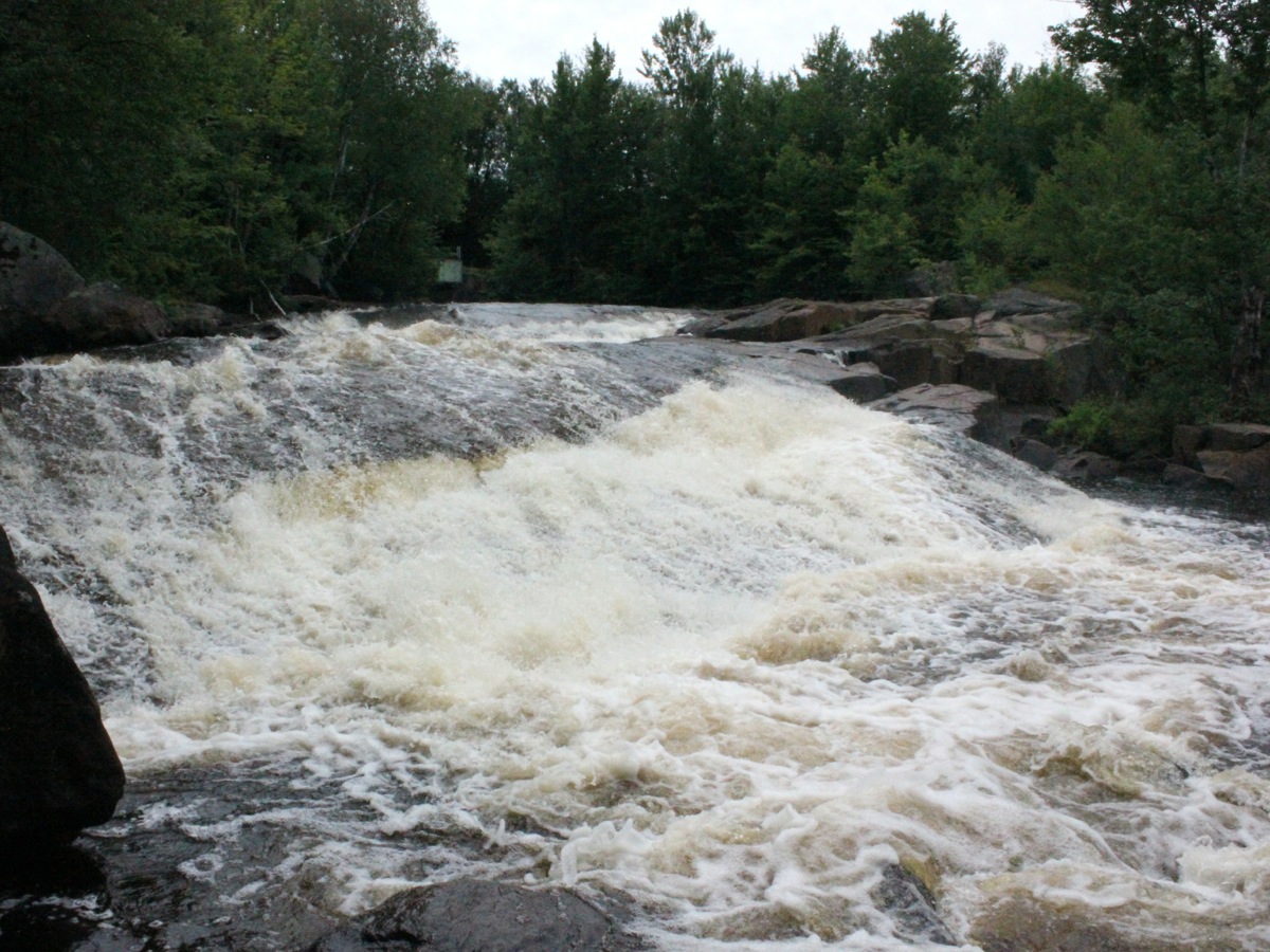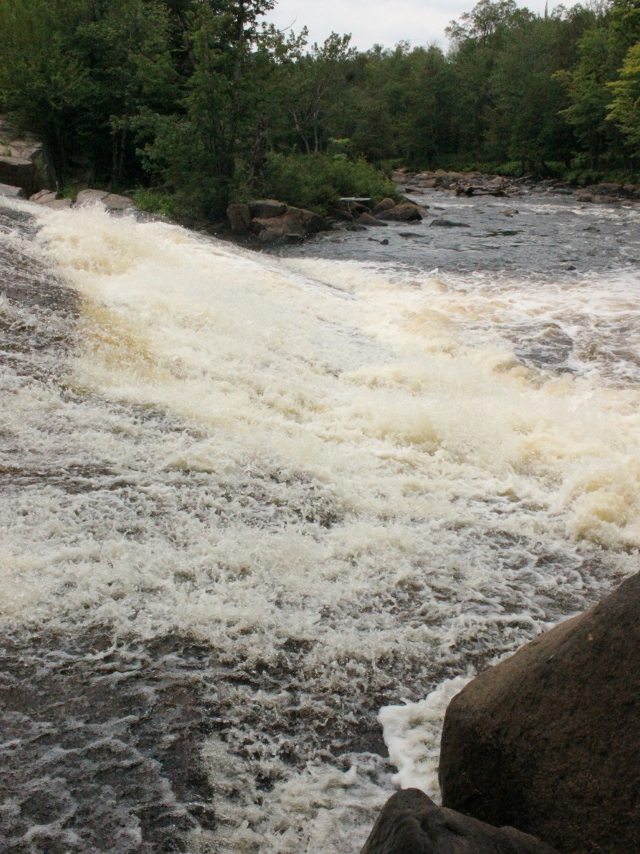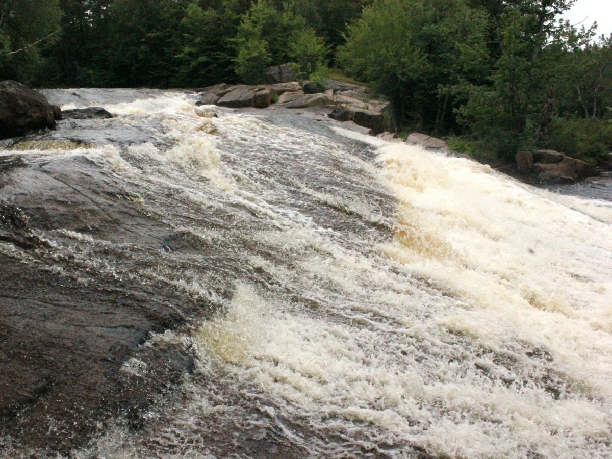 Sinclair Falls is a 15' slide on the Grasse River. The falls is around 50' long, and is located on a bend in the river. Both sides of the falls are accessible, but from different trail heads.