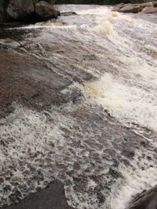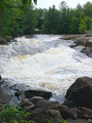 The falls is located along Tooley Pond Road, 2 miles south of its terminus at County Route 27. There is a parking area here with an information sign. The trail to the falls is short, but the first section is steep. There are plenty of rocks to clamber on down by the falls. The west side of the falls can be reached from Lake George Road, which meets Tooley Pond road just south of the falls. Lake George Road cross the river just above the falls.