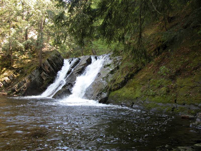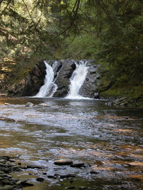 Slate River Falls is, unsurprisingly, on the Slate River. This is the largest of many drops over a three mile stretch of the river. This is a wild waterfall, with no fences, and the only trail is one left behind by the curious feet of others.