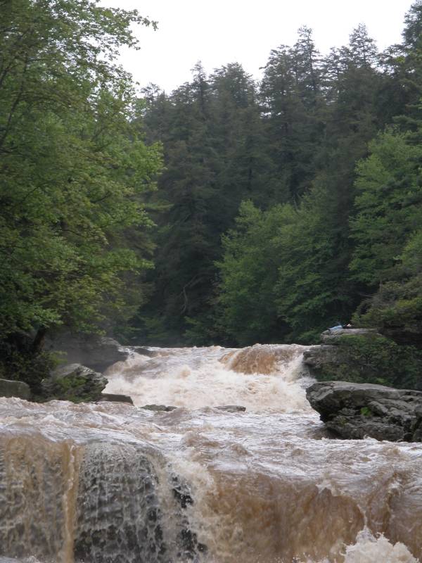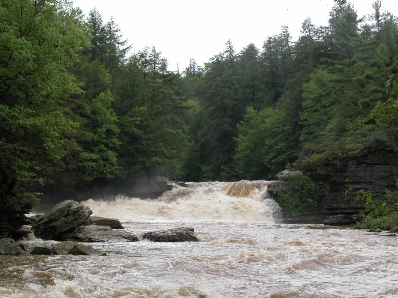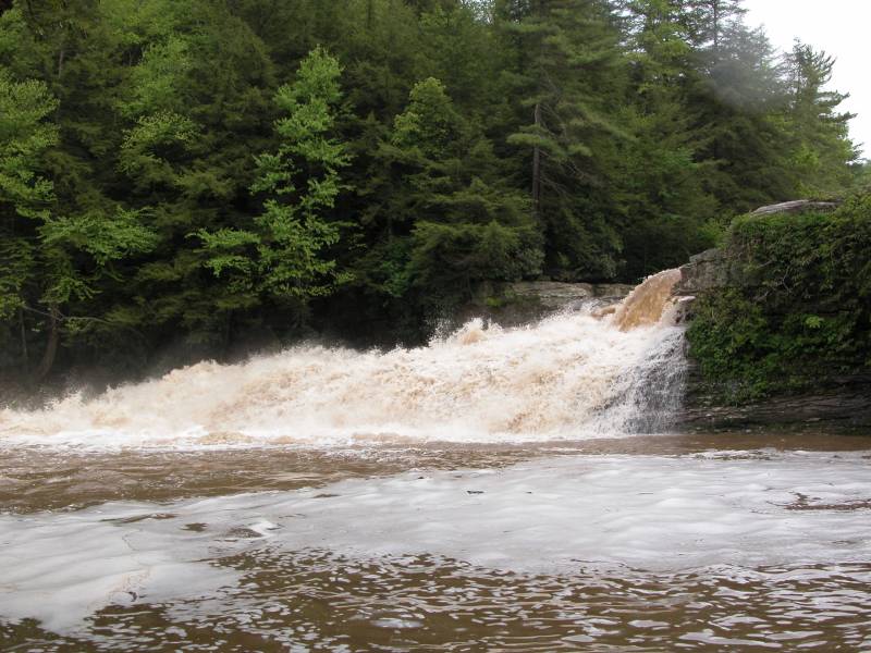 The much more impressive Muddy Creek Falls is just a short walk away. The very small Tolliver Falls is even closer. Blackwater Falls and others can be found in West Virginia's Blackwater Falls State Park 30 miles to the south. The "Yawk" repeats this performance 60 miles downstream where you can find the Ohiopyle Falls on the Youghiogheny River and the more impressive Cucumber Falls falling into the gorge.