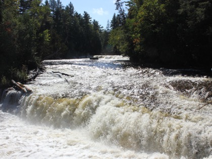 Tahquamenon Falls State Park park is on MI-123. It is on the map and is easy to find, but it is a bit out of the way. There are three sections to the park: the Upper Falls, the Lower Falls, and the rivermouth campsite.