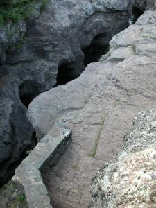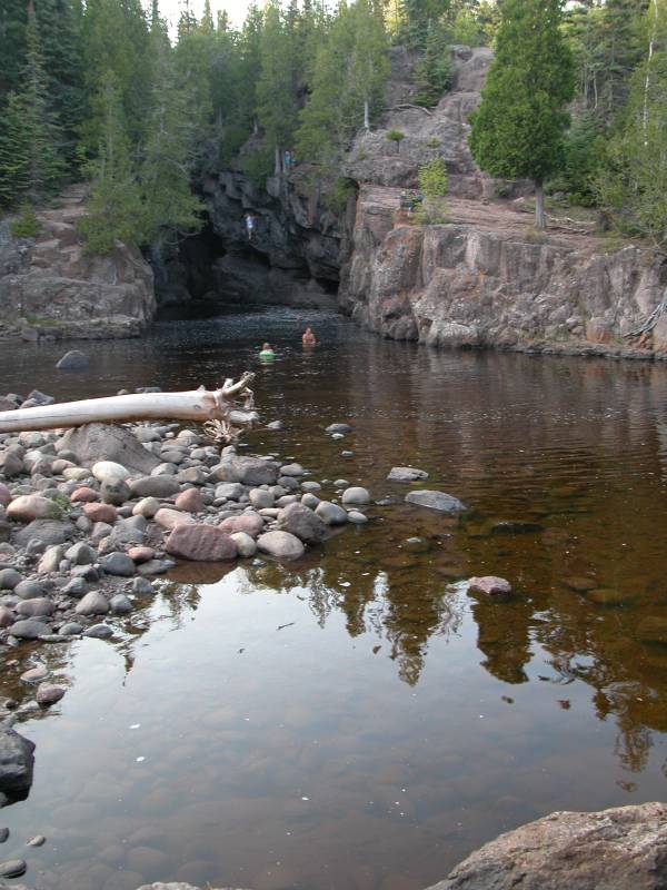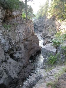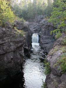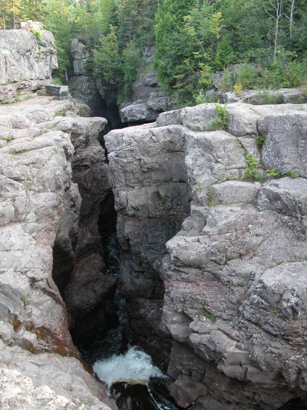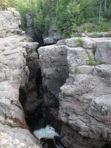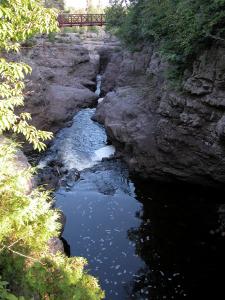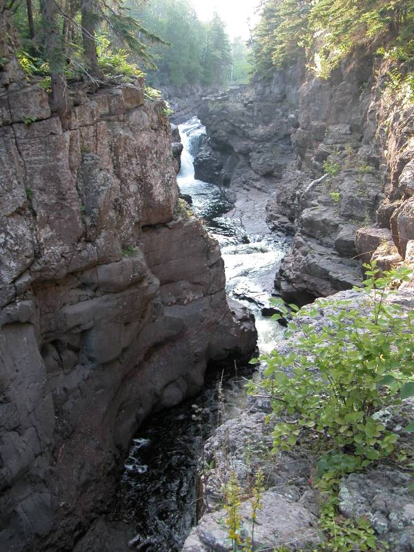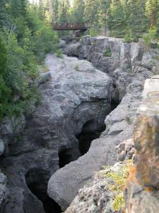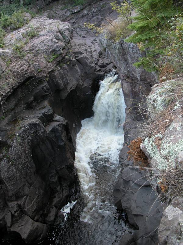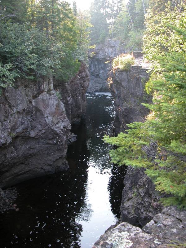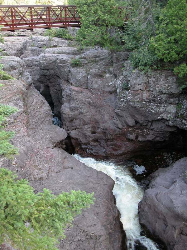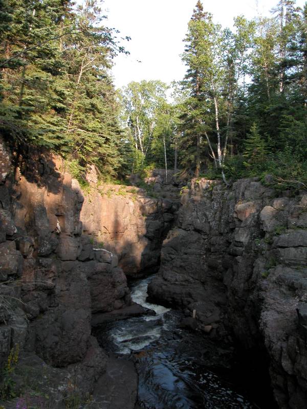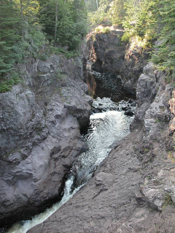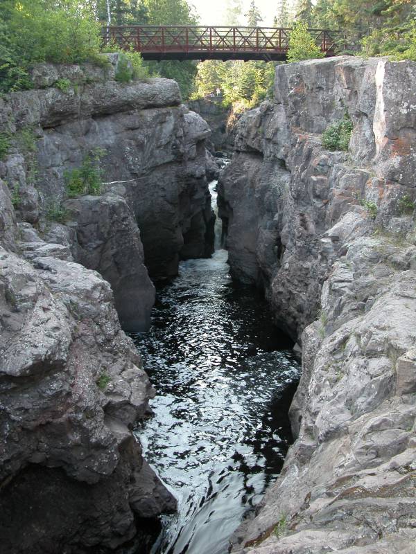 The Temperance River Gorge is in Temperance River State Park is on Minnesota's North Shore, between Schroeder and Lutsen. The Temperance River carves out a narrow and twisted quarter mile long gorge shortly before it empties into Lake Superior. You can walk around the rim of the gorge, climb down into it, and in some places you can even go swimming if you are daring (foolhardy) enough.