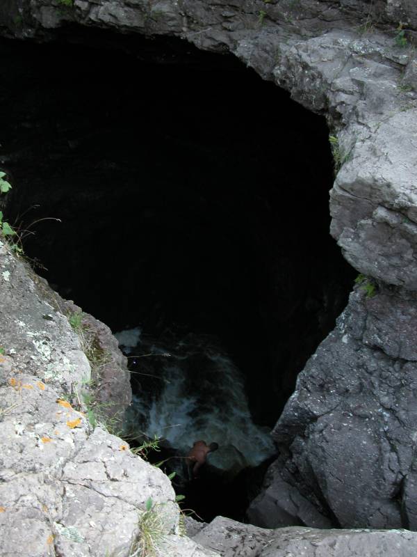 The gorge seems to be a popular place with the local thrill seekers. Right near the mouth of the gorge there is a cliff to jump off of into the river below. If that is not crazy enough for you, you can jump into one of the pot holes above Hidden Falls, and then jump off of Hidden Falls. Look carefully at the picture on the right and you you see the guy getting ready to jump over the falls. Ahh, to be young and stupid again.
