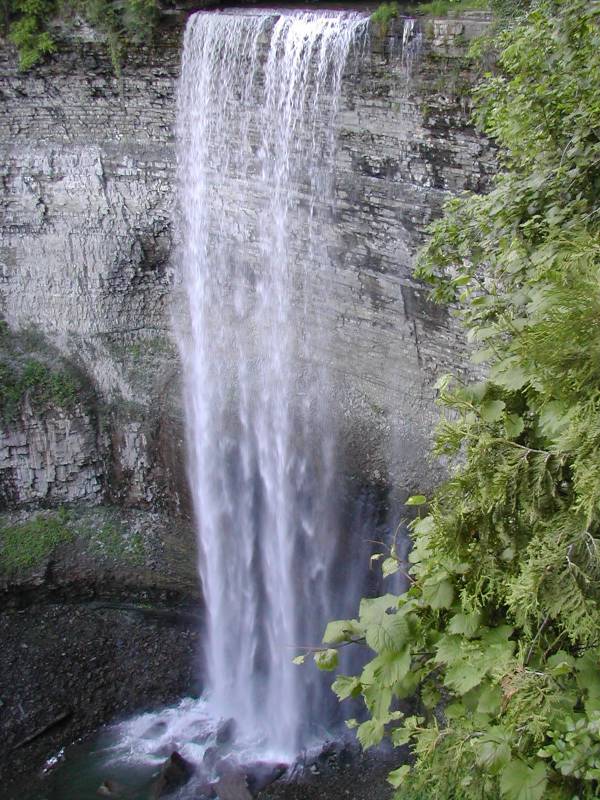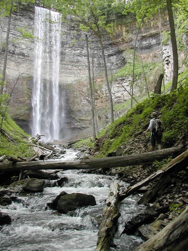 Tews Falls is in the Spencer Gorge/Webster's Falls Conservation Area. This is another of the many waterfalls found along the Niagara Escarpment, and is one of the highest. Tews Falls is the runner up for "The Most Improved Falls of 2003". In July of 2002 it was a thin trickle, barely even worth a picture. But in June of 2003, it was a beauty.