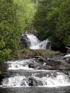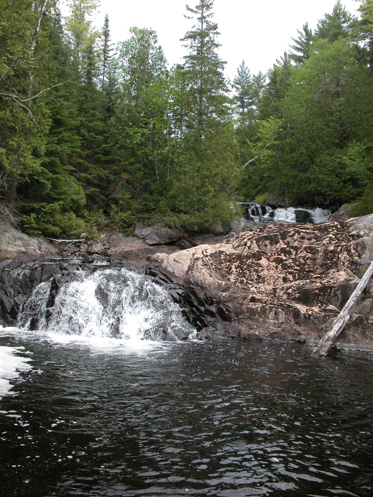 The falls are located along the Thessalon River trail, which starts near Carpenter Lake Cabins. The falls are about 6km from the cabins. You can drive about 2km if you are willing to cross a small stream. The last 4km are for foot traffic only. Along the way you will pass the Lower Falls. The trail from the lower to upper falls does not see as much traffic, and there was a bit of deadfall along the way.