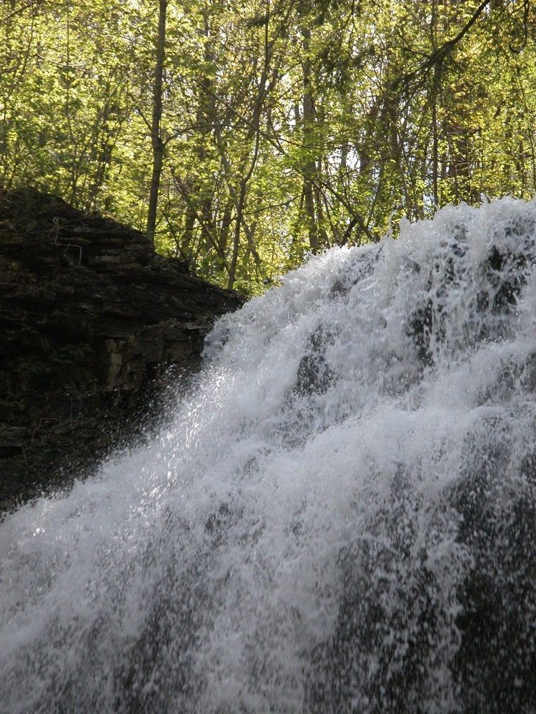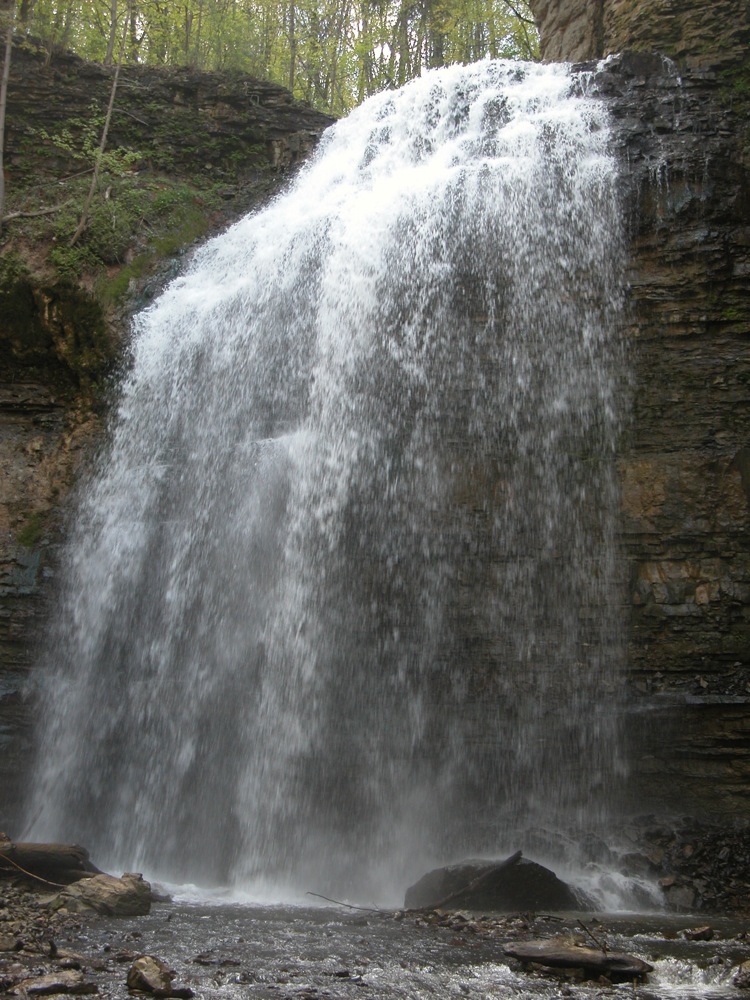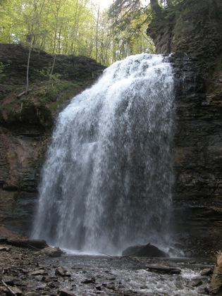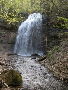 The Bruce Trail passes near Tiffany Falls. A side trail goes to the falls. A 15 minute hike down the Bruce Trail will take you to Sherman Falls. The trail is never far from the road, but is far enough below it that you will not see any cars. You can still hear the traffic however.