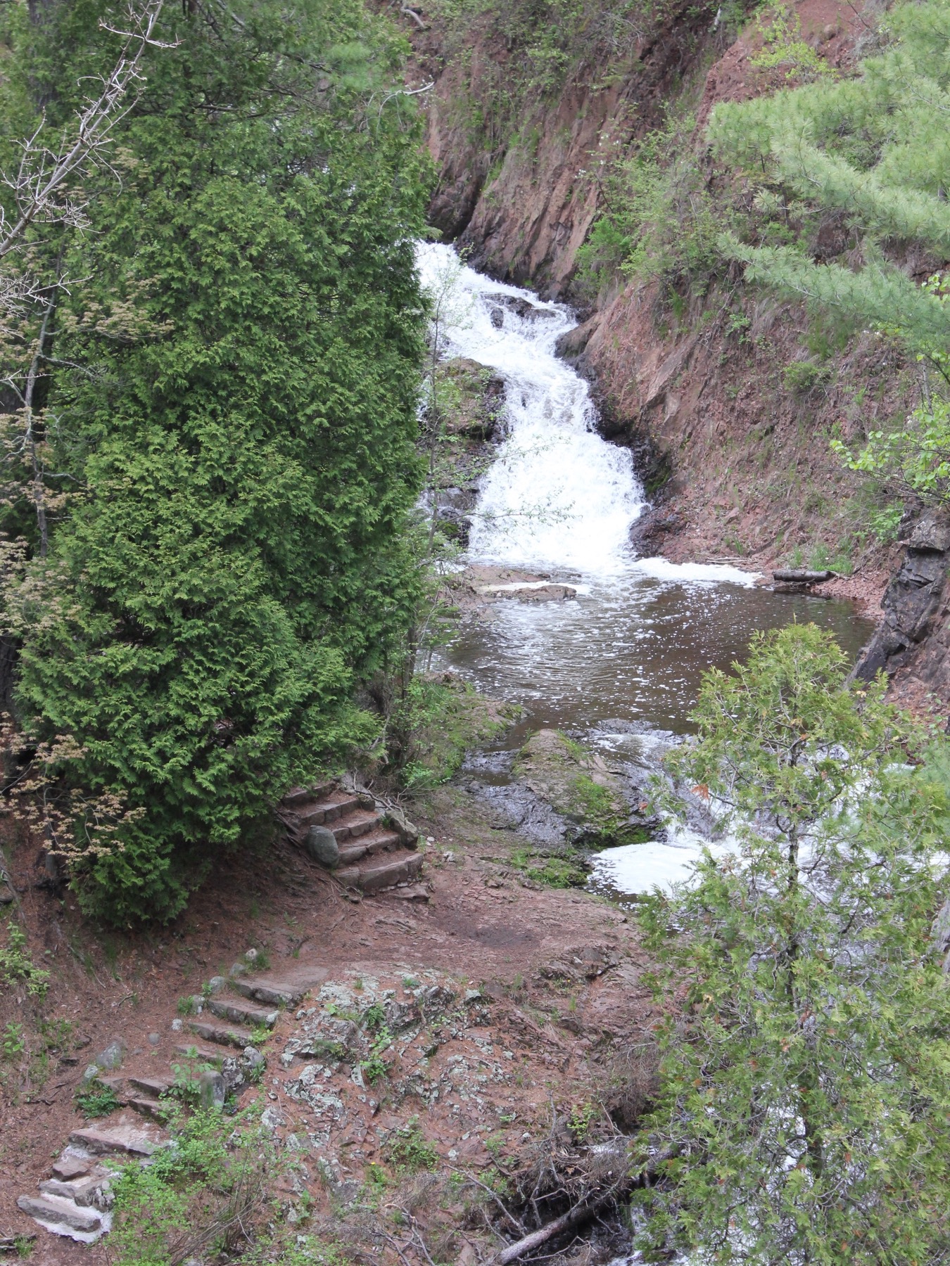 Nearby Lester Park also contains a set of small waterfalls. If you head north on Highway 61 you will find a bunch of waterfalls, starting with Goose Berry Falls, Beaver River Falls, Baptism High Falls, Illgen Falls, plus many more. Wisconsin's Big Manitou Falls is about 20 miles to the south.