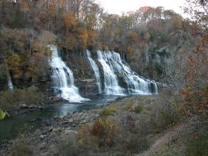 There are lots of waterfalls in this part of Tennessee. The mostly dry Great Falls is just upstream. Burgess Falls Fancher Falls, Evins Mill Falls, and Cul-Car-Mac Falls are all to the north around Center Hill Lake. Cane Creek Falls, and Fall Creek Falls are 40 minutes away to the south.