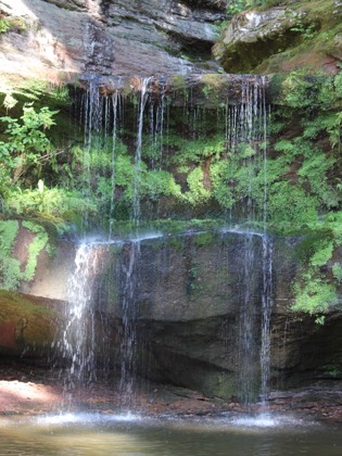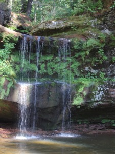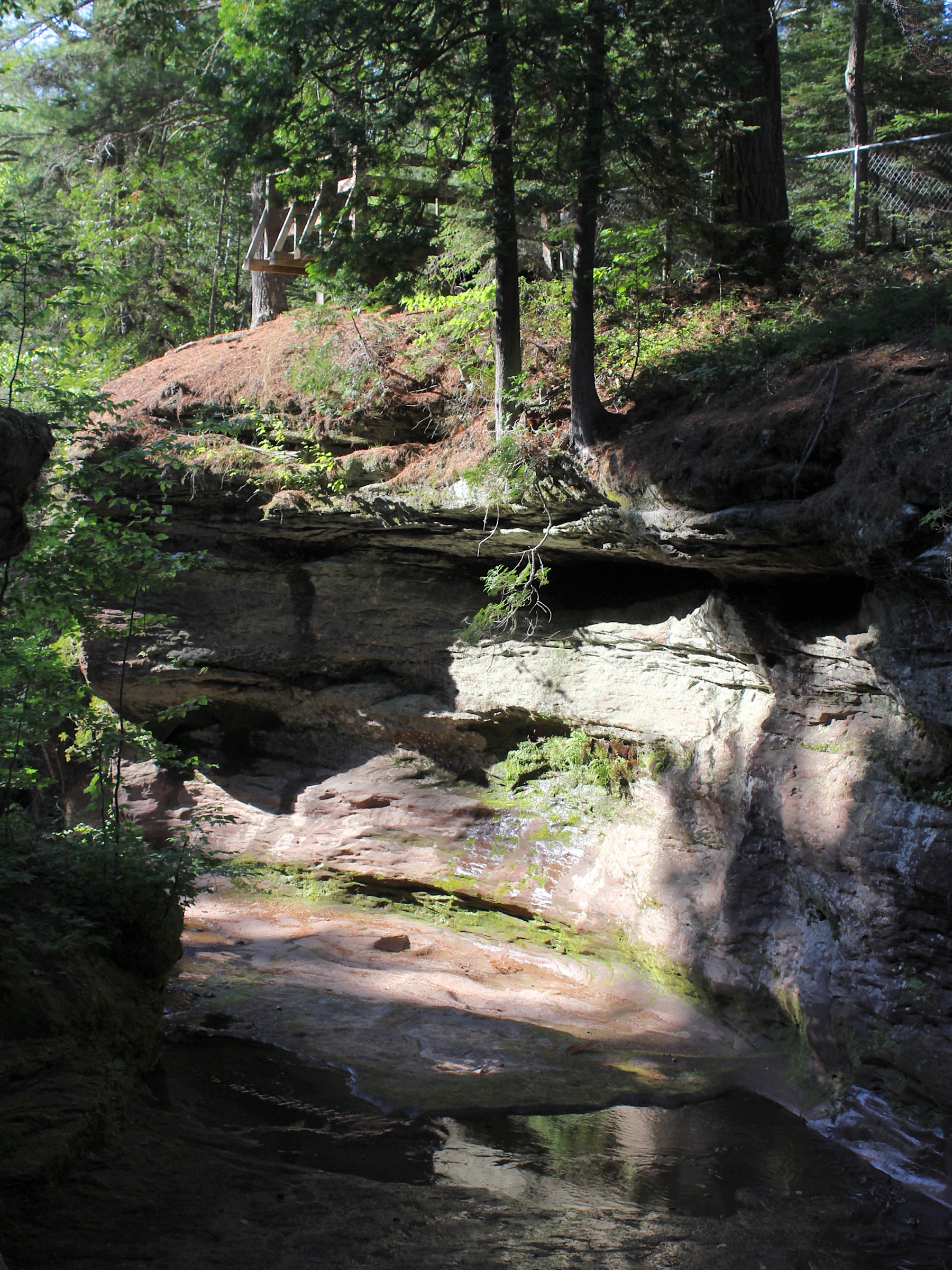 The falls is located in a small park just west of Port Wing off of Highway 13. The signage is not easy to see if you are heading west. The park consists of a couple of parking spots, and trails to the falls. You can hike up the creek to reach the falls. You might get your feet wet. Along the way you will pass a "sea cave" where the creek has carved out the gorge wall.
