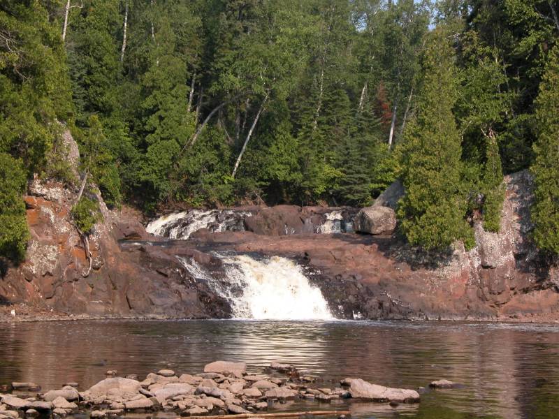 High Falls and Illgen Falls are farther upstream. Devil's Kettle Falls, the Upper Falls of the Brule River, the High Falls of the Pigeon River, Cross River Falls, Gooseberry Falls, and the Temperance River Gorge are all along Minnesota's north shore.