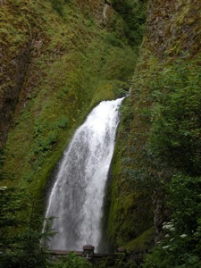 There are a lot of waterfalls in the Columbia River Gorge. Fairy Falls is upstream. Multnomah Falls, Weisendanger Falls and Ecola Falls are a mile or so the west, and many more falls are past that. Wahkeena Falls, Bridal Veil Falls and Latourell Falls are a few miles to the east.