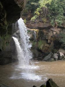 Some of the best views of the falls are from the east side of the river. In 2006 the built a pedestrian bridge below the falls, giving you easy access to both sides of the river. Before that you either had to wade through the river, or take the two Falls Trail which starts at the East Falls. It is a 10 minute walk through the gorge. There is a large cave-like recess on the east side of the falls.