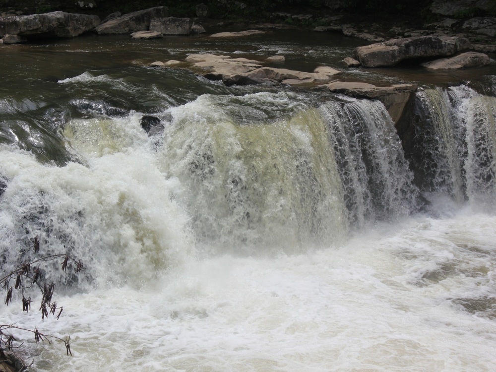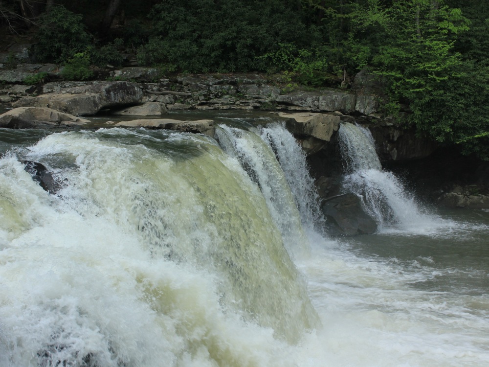 There are more falls downstream, but I do not know if they can be accessed from land. The largest of these is called Big Splat falls. Muddy Creek Falls in Swallow Falls State Park is a 25 mile drive to the south east. Ohiopyle Falls is 30 miles to the north east. Valley Falls is a 50 mile drive to the west and south. Blackwater Falls is a 60 mile drive to the south east.