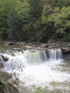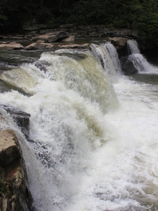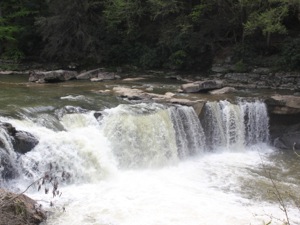 Wonder Falls is a wide 15+ foot drop on Big Sandy Creek. This is a high volume falls, as the "creek" could easily have been categorized as a river. The falls is run by rafts and kayakers and is a popular swimming hole.