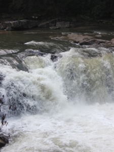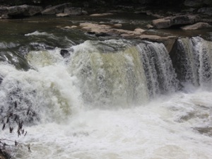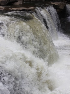 There is a clearing above the falls that is obviously used a party spot. Some of the trees and shrubs have been cut down to provide a clear view of the falls. You can easily reach the edge of the falls, but there did not seem to be any easy way down into the gorge below the falls.