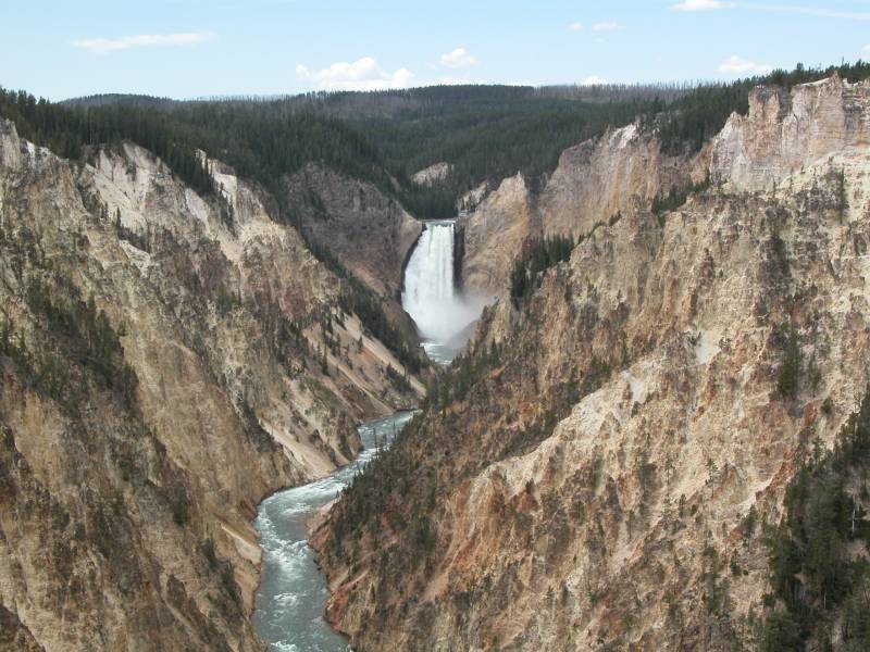 The Lower Yellowstone Falls are in Yellowstone National Park, near Canyon Village. This is one of the most impressive waterfalls in North America.